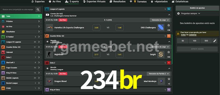 O 234br oferece uma grande seleção de opções de apostas em e-sports com probabilidades competitivas
